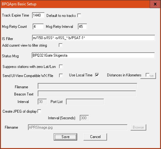 Set the filter string for the APRS-IS Server connections, and whether to add the current map display area to the filter.