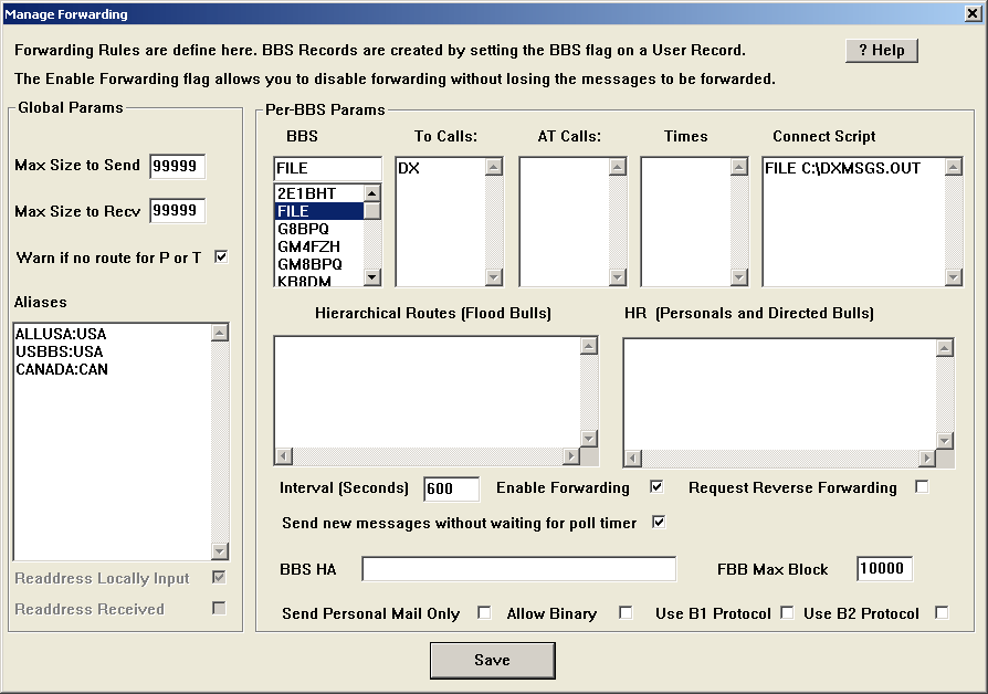 for a BBS has FILE Filename as the first entry, messages will be written to the file "filename". If the