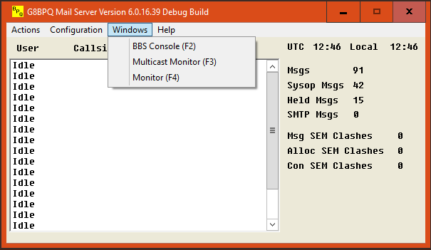 From here you can open the Console window, which connects you to the BBS, and the Monitor windows.