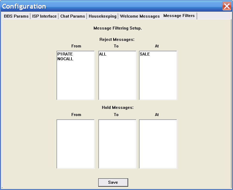 Here you define rules to filter what messages you accept onto the BBS.