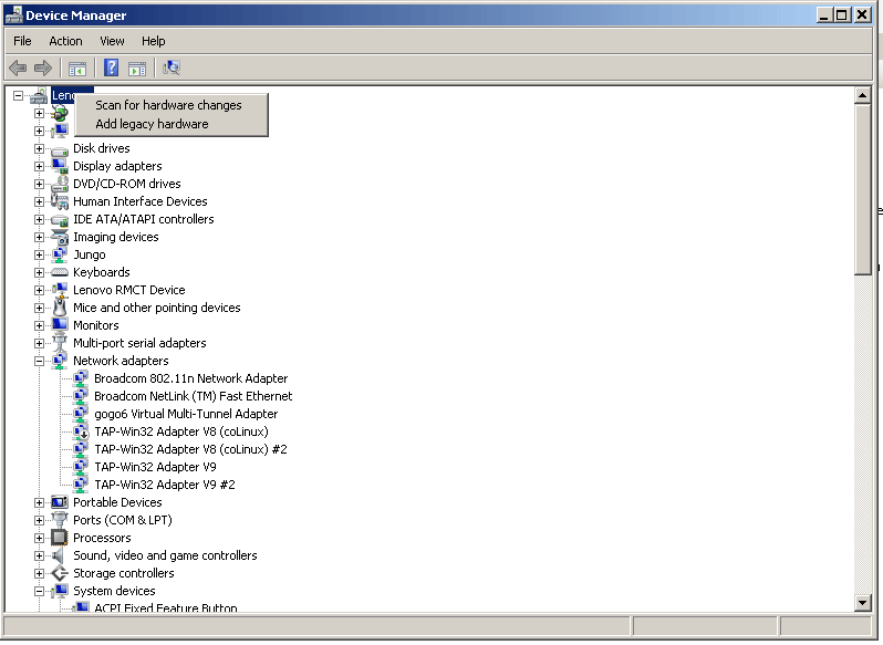 Then Right Click on your computer name, and select "Add legacy hardware"